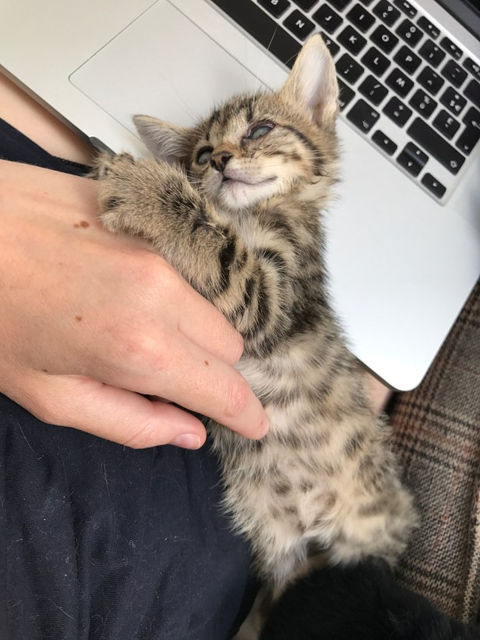 450g : Je sais que c’est très mauvais signe. Il vient de vomir le peu qu’il a mangé. Je dois l’emmener chez le vétérinaire et j’ai très peu d’espoir. Je pleure en attendant l’heure et le tiens contre moi. Il est essoufflé, semble très fatigué mais lutte contre le sommeil.
